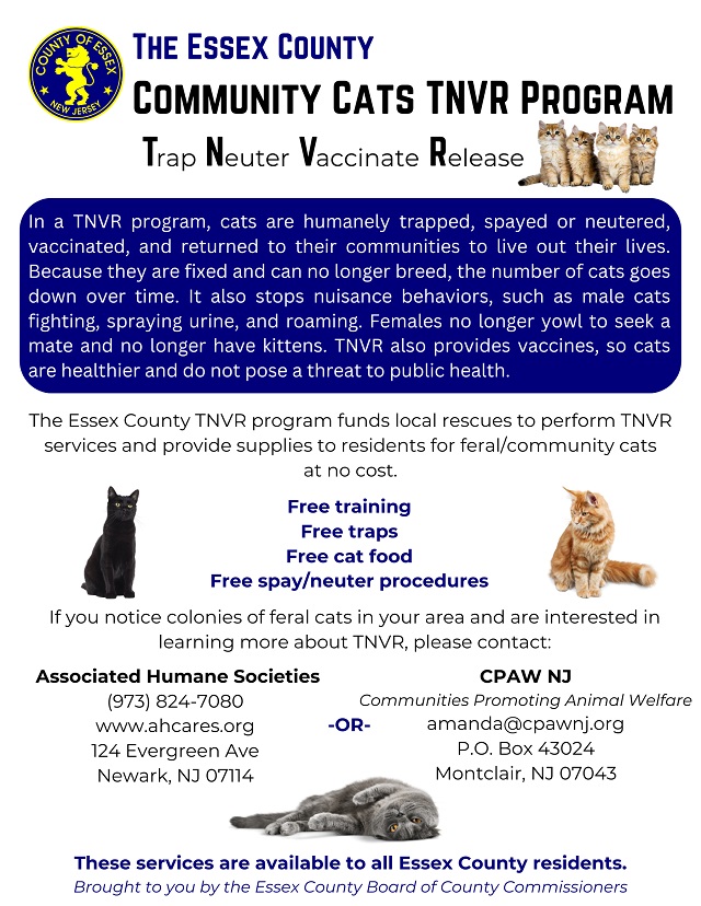 Per Wikipedia: “As of 2024, NJ is divided into 21 counties & 564 municipalities!” Google says: At least 5 NJ counties officially endorse or sponsor TNVR: Essex: County Commissioners have established a TNVR grant program that local nonprofits can use. (See below). Bergen: County website mentions S/N & TNR programs offered through its animal shelter & adoption center. Cape May: County website provides info & links to a low-cost feline clinic for TNR, stating that many municipalities in the county support & even fund the procedure. Monmouth: The Monmouth County SPCA runs a "Community Cats TNR Program" w/goal of stabilizing feral cat population county-wide. Atlantic: Program info mentions efforts to help "1000 cats" through a TNR program in the County. And, more than 150 NJ municipalities endorse or sponsor TNVR programs, & state-level bills have been introduced to provide grants to municipalities & counties for TNVR initiatives.” #s seem to say there’s MORE to be done? Who’s Next?